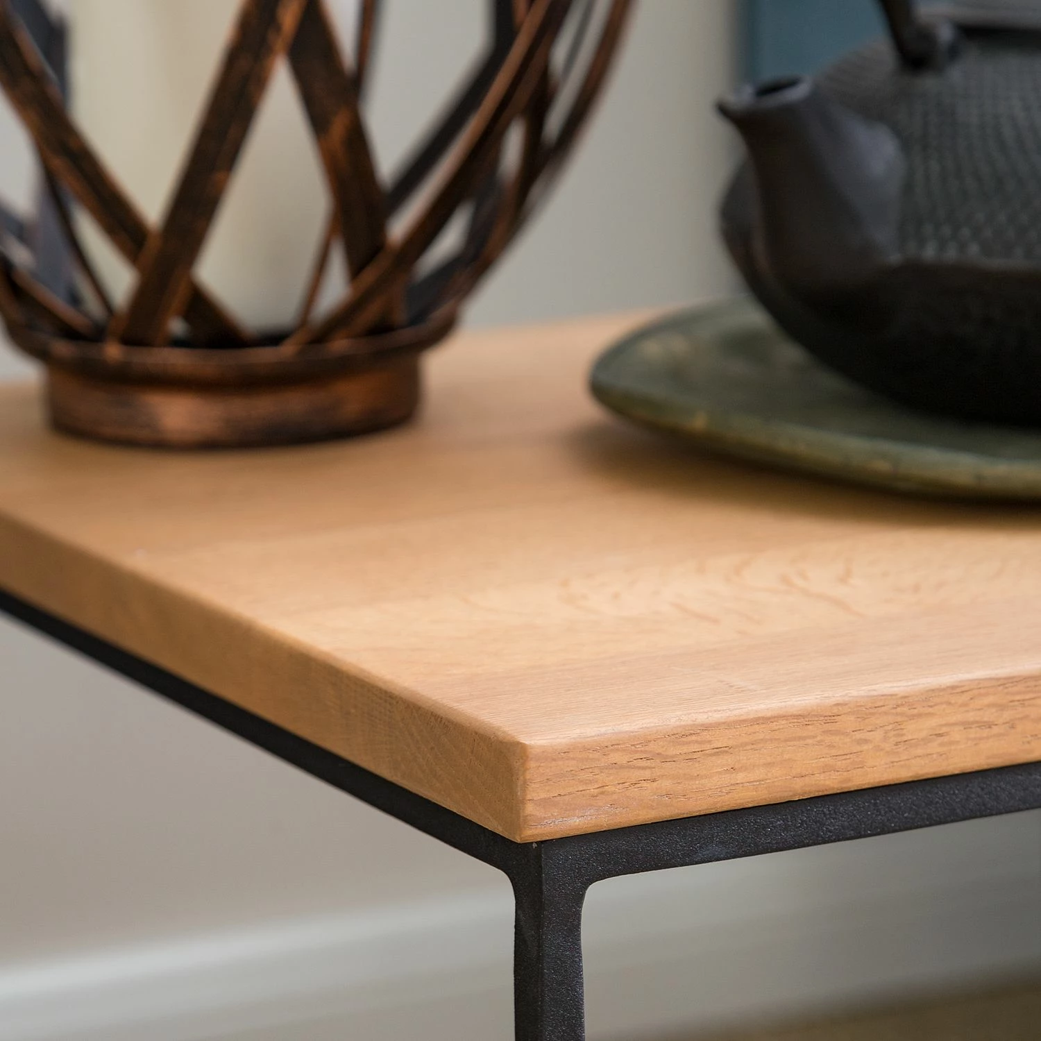 - Tischplatte: Massivholz Eiche, geölt