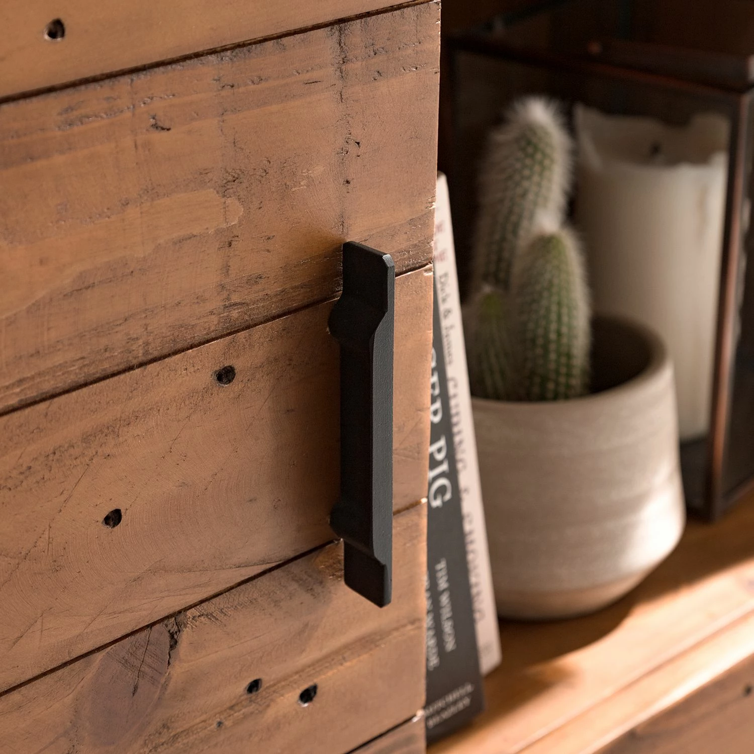 - Front & Korpus: Altholz Pinie, lackiert