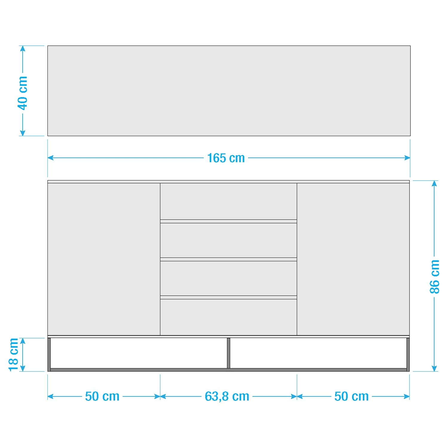 - Schubladenbreite: 63,8 cm
