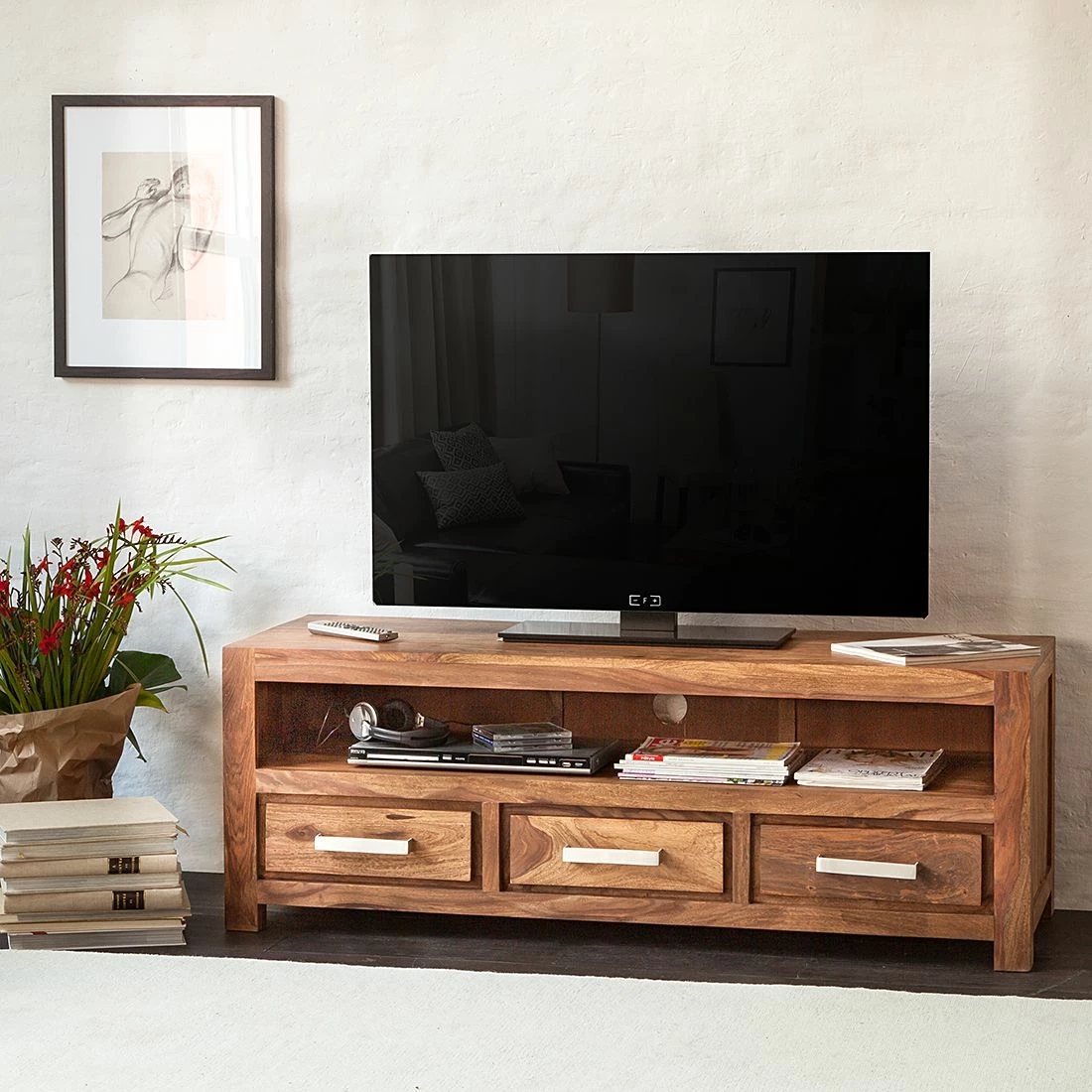 Ars Natura TV-Lowboard Ohio II - Shessham massiv -Wohnzimmermöbel boutique en ligne lowboard ohio 3 schubladen 1 grosses fach 1350911
