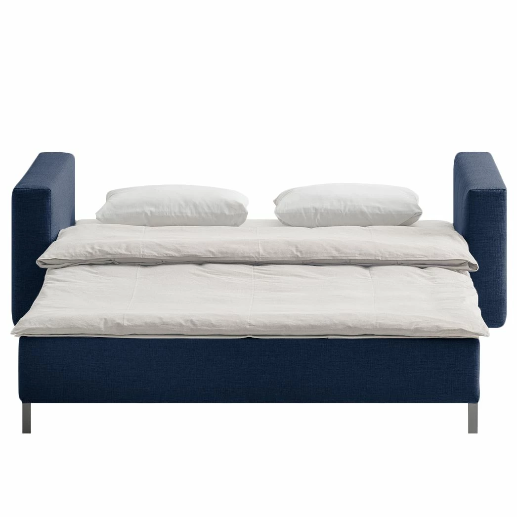 Genug Platz finden auf diesem blauen Schlafsofa bis zu 3 Personen. Die Liegefläche lässt sich im Handumdrehen auf 150 x 200 cm erweitern. Einwandfrei kombinieren lässt sich dieses Sofa von chillout by Franz Fertig beispielsweise mit einem Polsterhocker im modernen Stil. Hergestellt ist es aus Webstoff. Der unempfindliche Webstoff ist ausgesprochen strapazierfähig. Auch für ein bequemes Sitzen ist gesorgt.