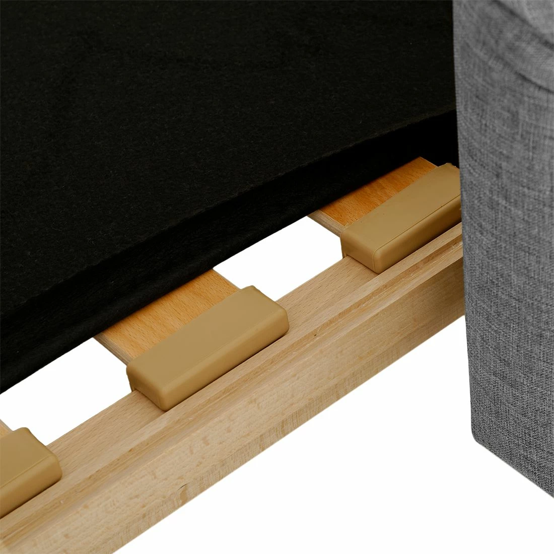 - Unterfederung: Federholzleisten mit Verbundfilzabdeckung