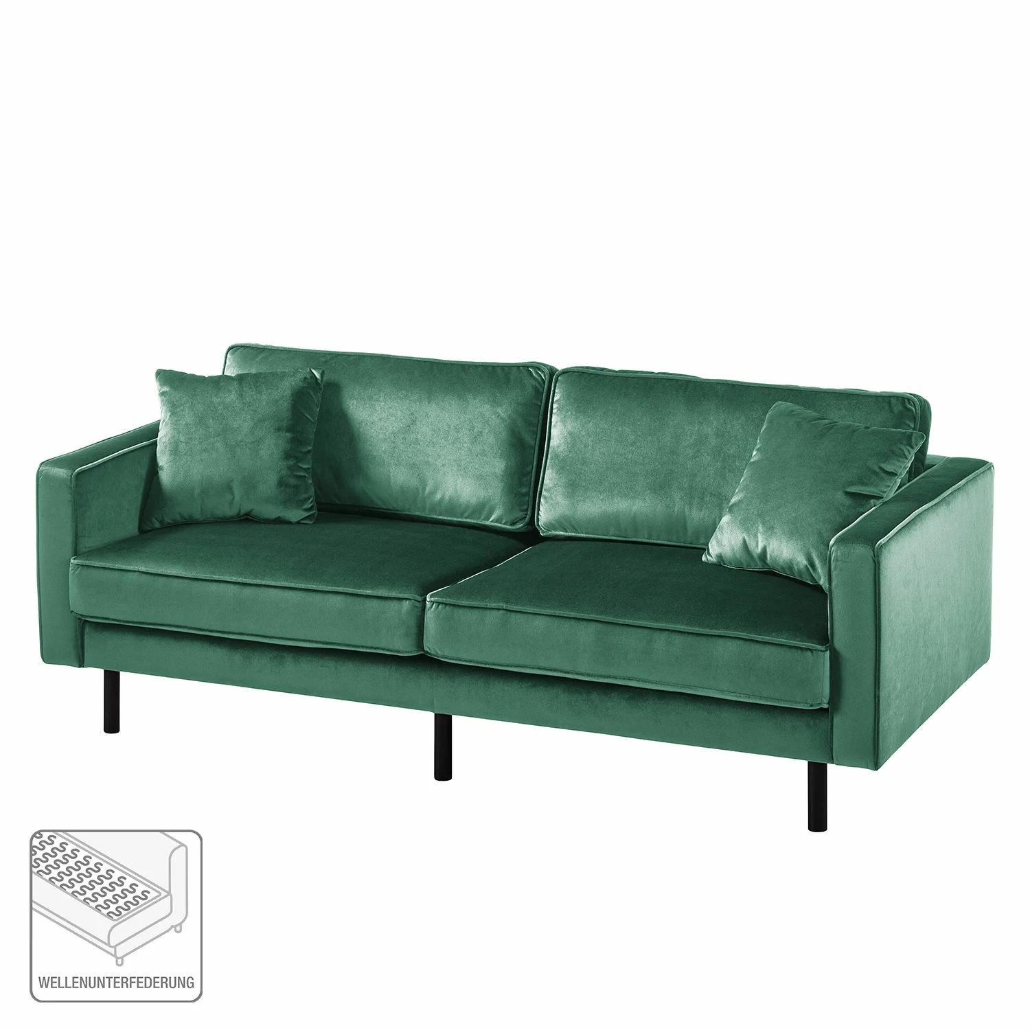 - Lieferumfang: 3-Sitzer Sofa inkl. 2 Dekokissen, ohne Dekoration