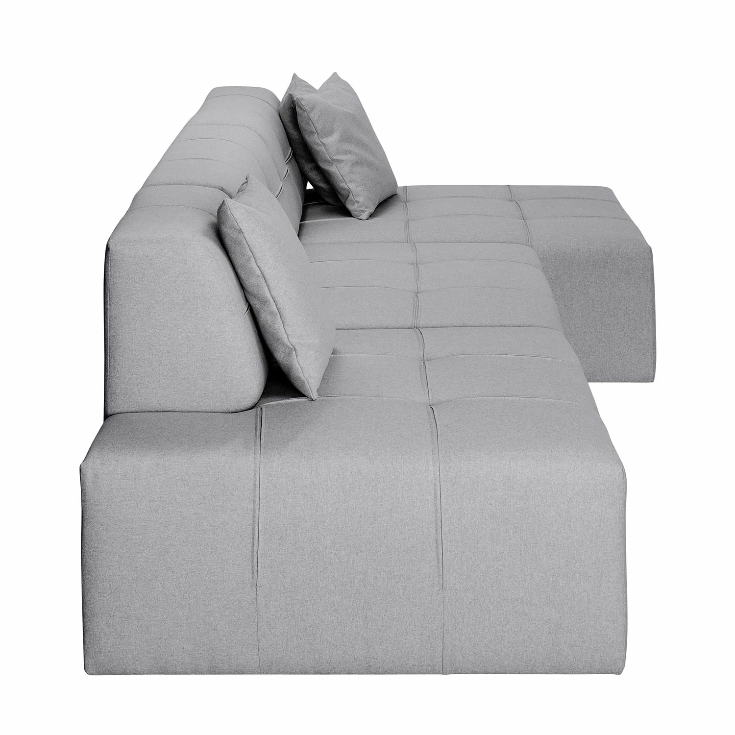 - Lieferumfang: Ecksofa inkl. 3 Zierkissen, ohne Dekoration