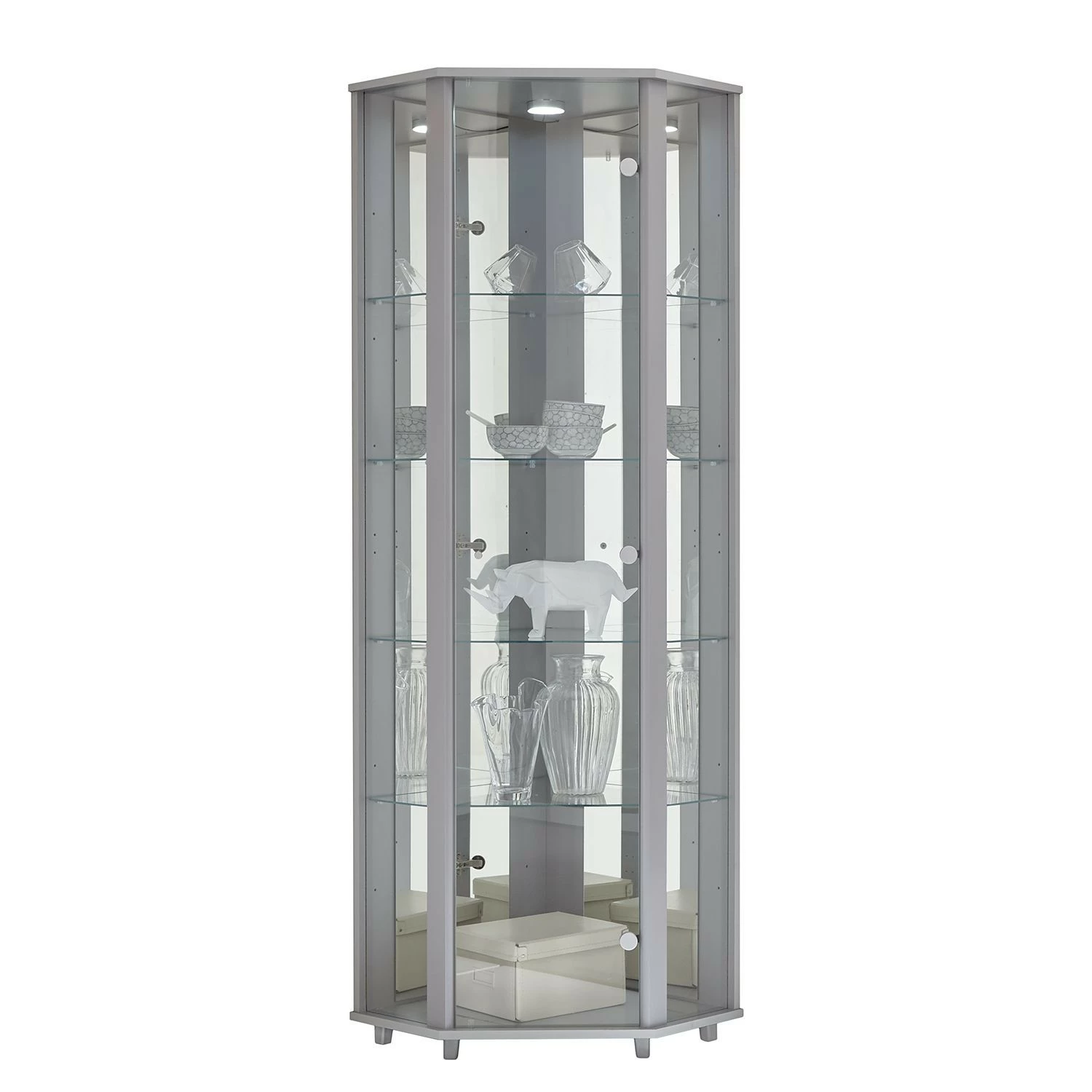 - Lieferumfang: Eckvitrine ohne Dekoration
