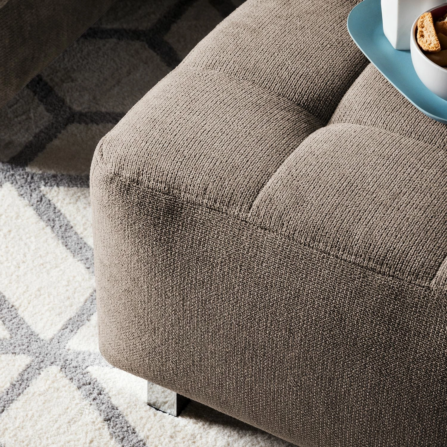 Norrwood Wohnlandschaft Mia Mia I – Webstoff – Grau – Longchair davorstehend rechts / Ottomane links