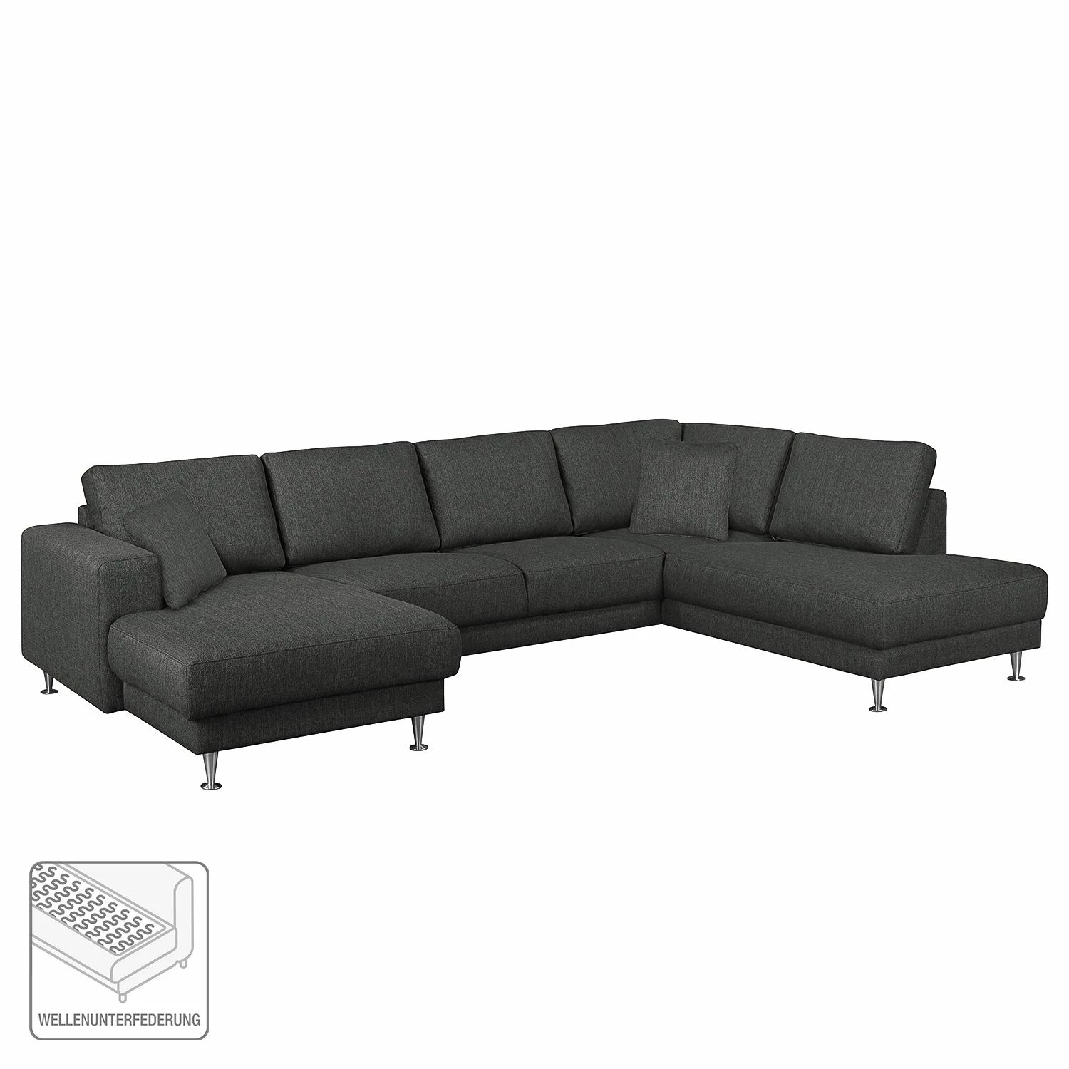 - Lieferumfang: Wohnlandschaft inkl. 2 Kissen, ohne Dekoration