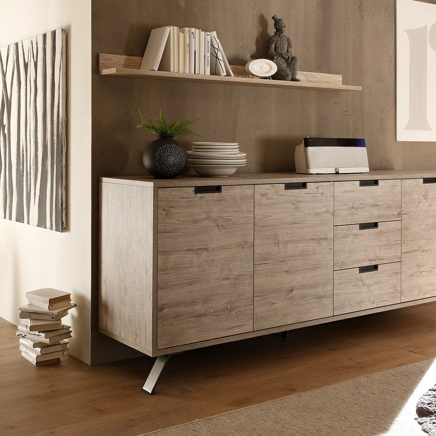 - Das Wandboard ist nicht nur ein Blickfang, sondern kann durch sein schlichtes Design einfach mit anderen Stilen gemischt werden.