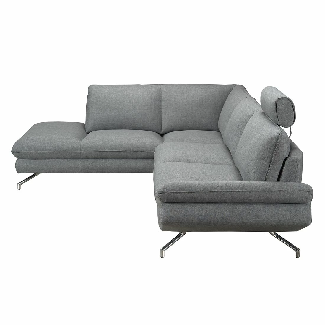 Bis zu 4 Personen können auf diesem grauen Ecksofa problemlos Platz nehmen. Sie suchen noch etwas, das zu diesem Sofa von loftscape passt? Mit einem Couchtisch im modernen Stil machen Sie alles richtig. Hergestellt ist es aus Webstoff. Der unempfindliche Webstoff ist ausgesprochen strapazierfähig. Garantiert bequem sitzen Sie durch die Polsterung aus Kaltschaum ebenfalls.