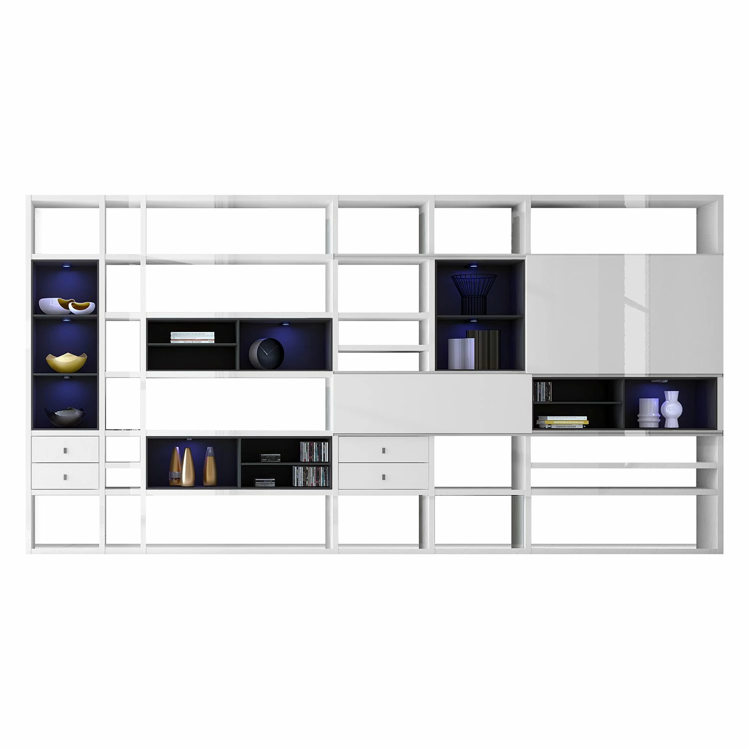 - Lieferumfang: XXL Regalwand ohne Dekoration