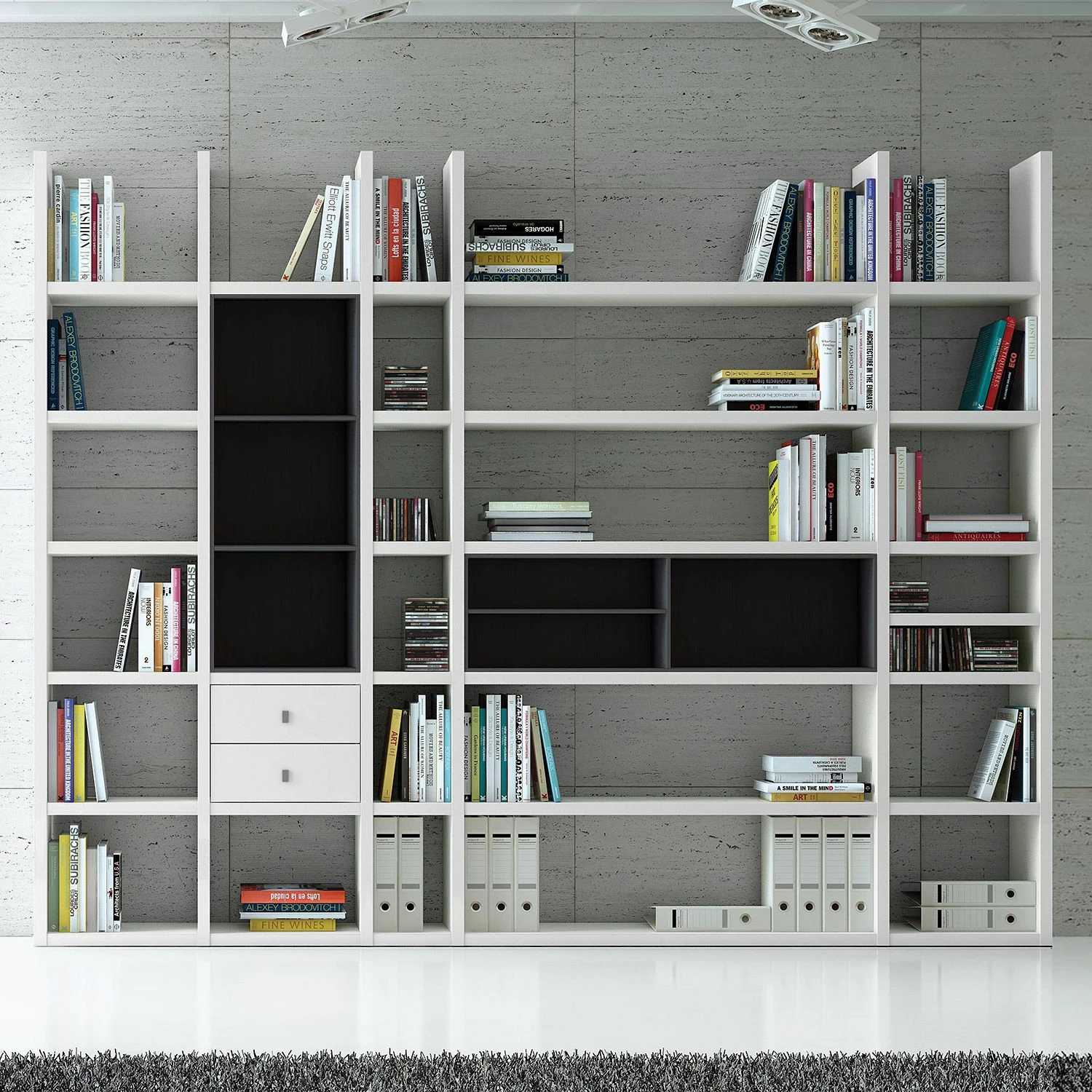 Mit der XXL Regalwand Emporior VIII von Fredriks ist es leicht, eine moderne Note in den Wohnraum zu zaubern. Das leichte Design in modischem Weiß mit schwarzen Akzenten passt ausgezeichnet zu dem Einrichtungsstil, den man heute schätzt.