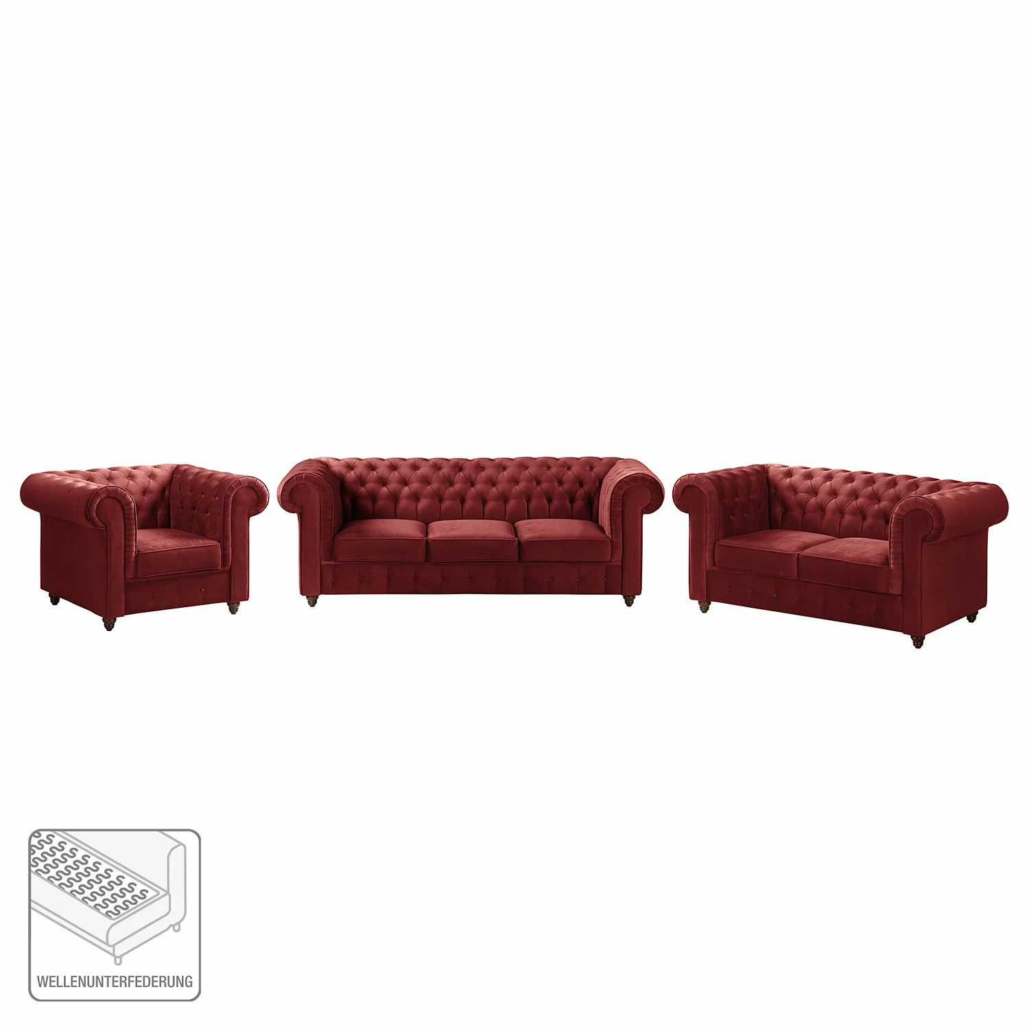 - Lieferumfang: Polstergarnitur (3-2-1) ohne Dekoration