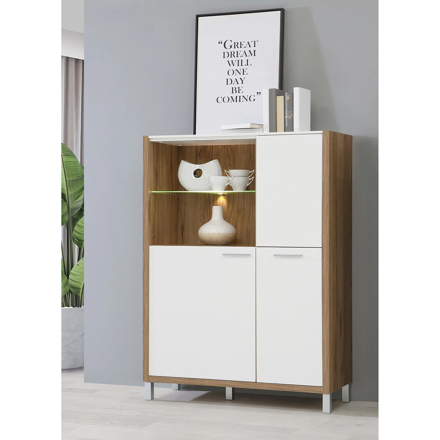 - Lieferumfang: Highboard ohne Beleuchtung & Dekoration