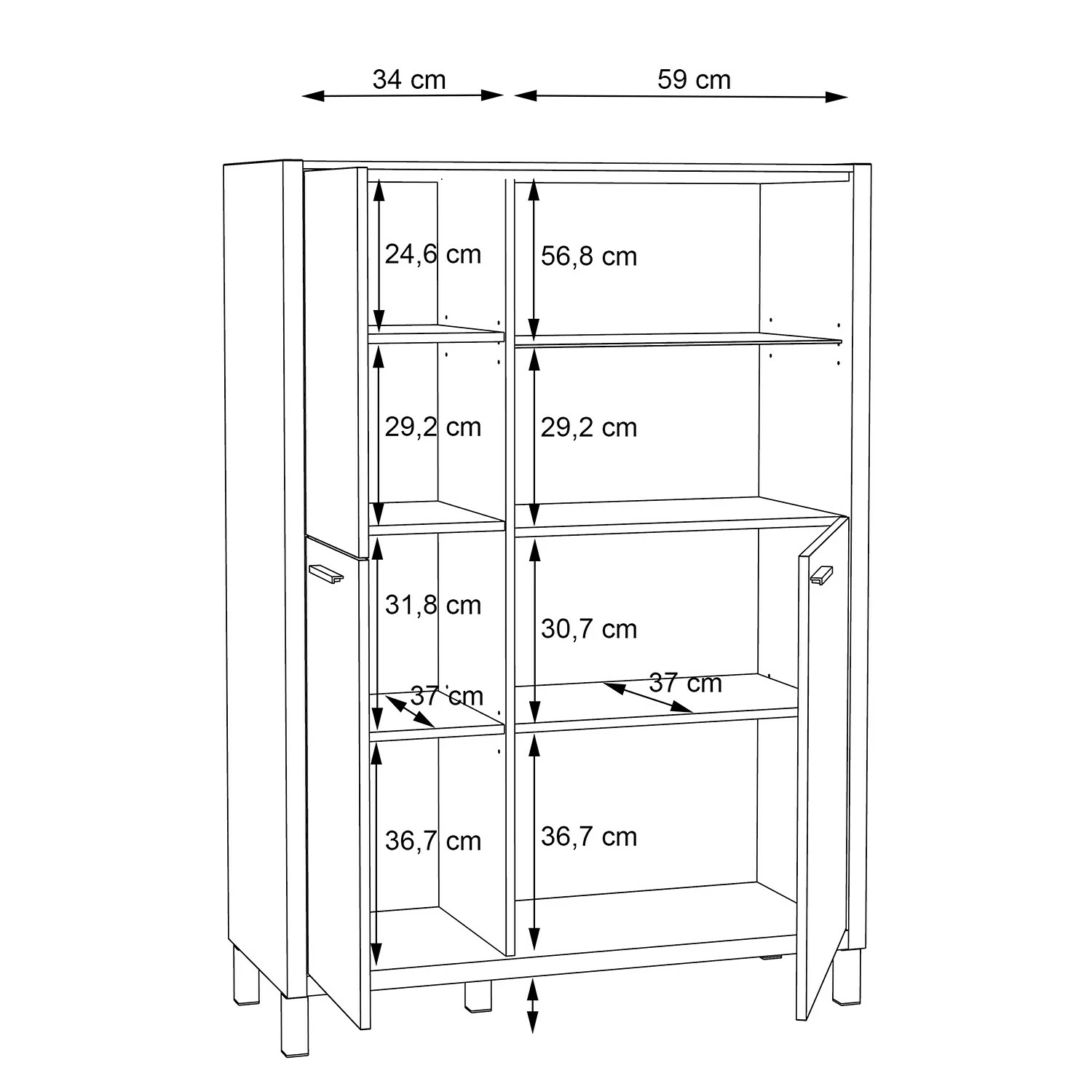 - Anzahl feste Fachböden: 5 Fachböden