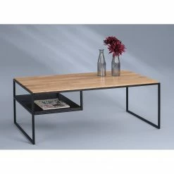 Loftscape Couchtisch Donelson – Eiche massiv / Metall – Eiche / Schwarz