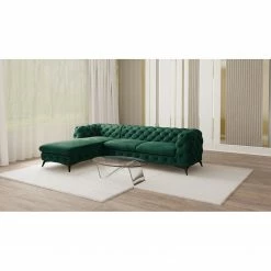 Jack & Alice Ecksofa Laviva I – Samt Ravi: Antikgrün – Breite: 305 cm – Ottomane davorstehend links