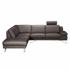 Loftscape Ecksofa Silvano – Webstoff Grau – Longchair davorstehend links – Mit 1 Kopfstütze