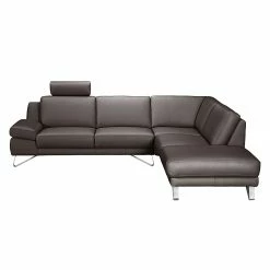 Loftscape Ecksofa Silvano – Kunstleder Mocca – Ottomane davorstehend rechts – Mit 1 Kopfstütze