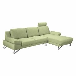 Loftscape Ecksofa Silvano – Webstoff Grün – Longchair davorstehend rechts – mit 1 Kopfstütze
