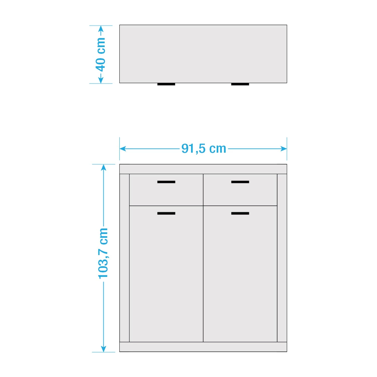 - Innenmaße Schubladen: B/H/T ca. 44 x 23 x 37 cm