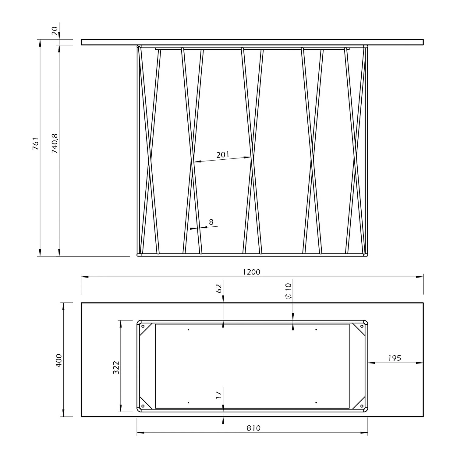 - Gestell: Metall, lackiert