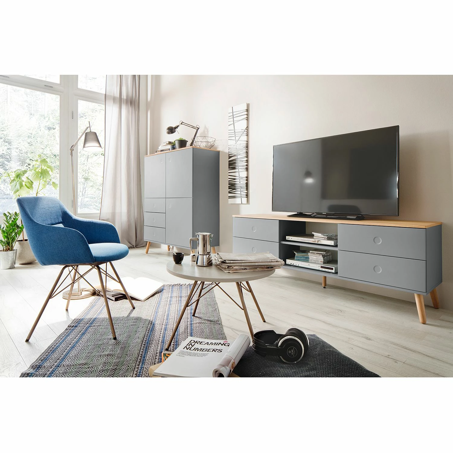 - Lieferumfang: TV-Lowboard ohne Dekoration
