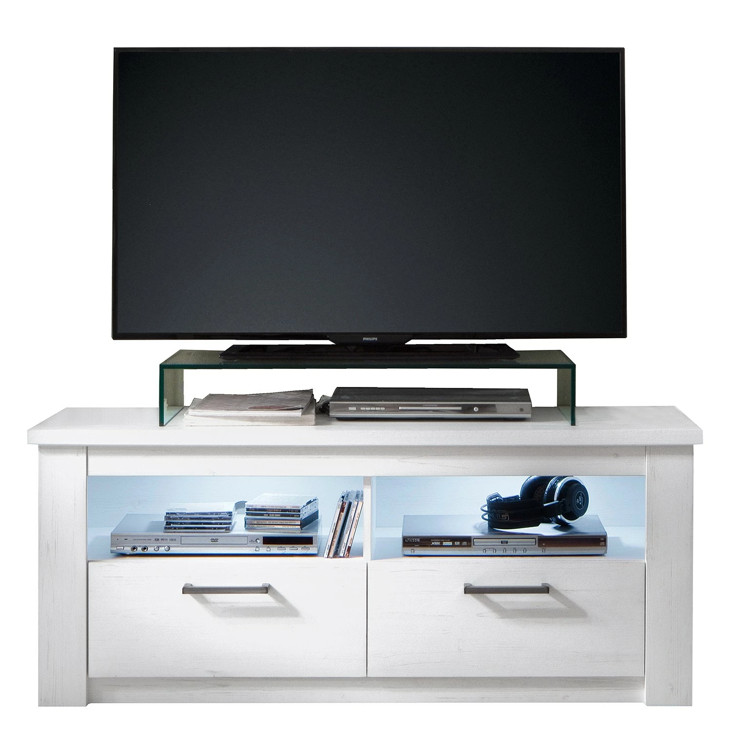 - Lieferumfang: Lowboard ohne Beleuchtung & Dekoration