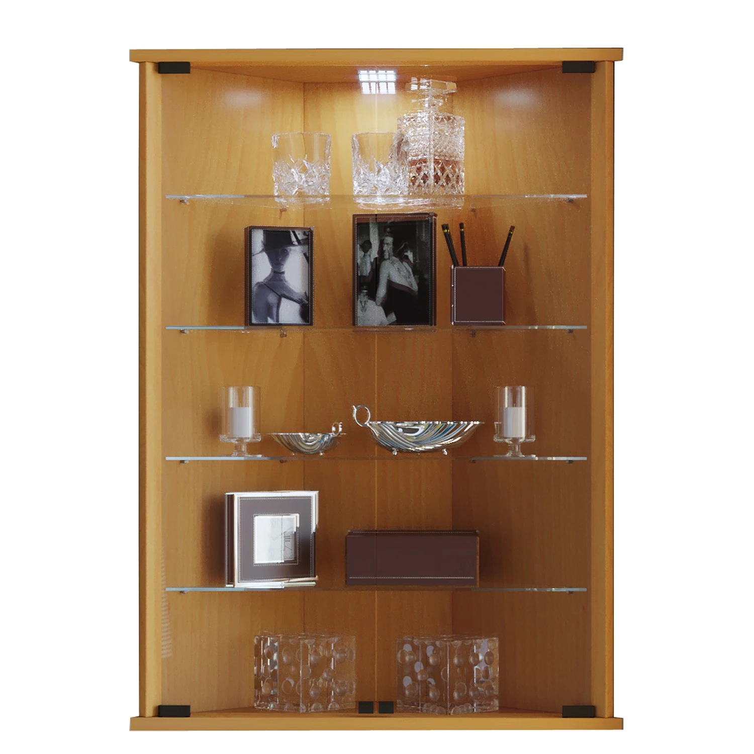 - Lieferumfang: Eckvitrine ohne Beleuchtung & Dekoration