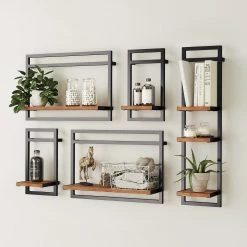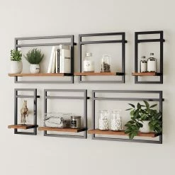Ars manufacti Wandregal-Set Manchester IV (6-teilig) – Akazie massiv / Metall – Akazie / Anthrazit